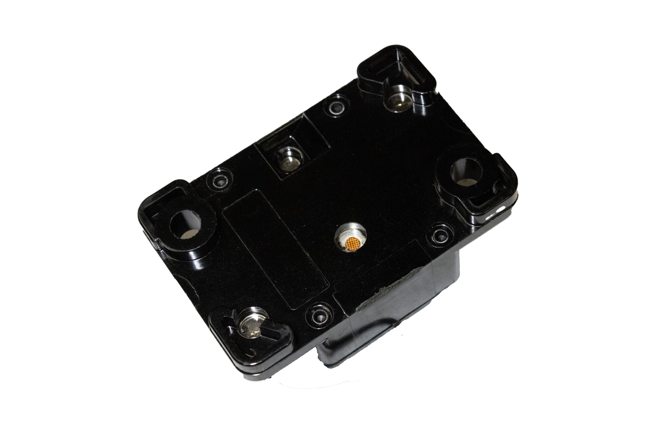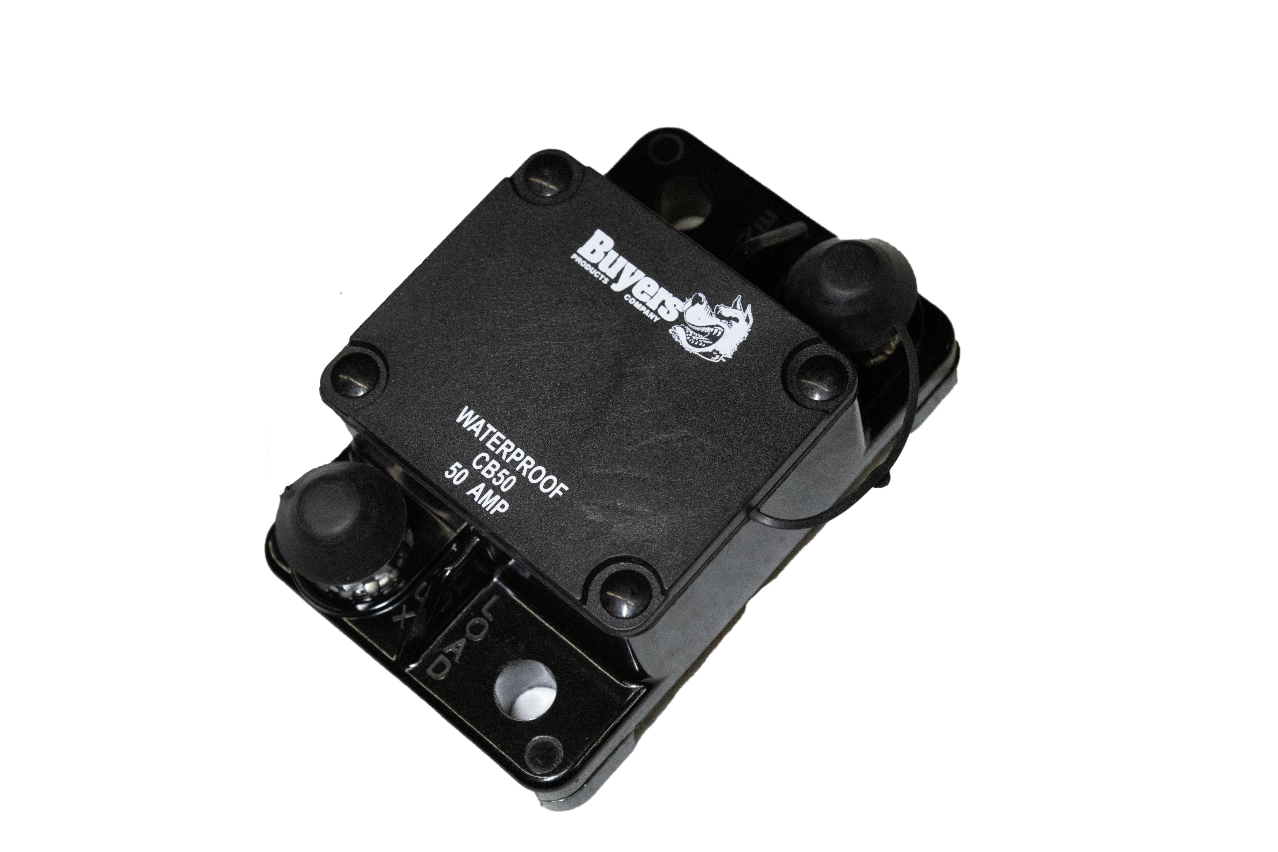 This high amp circuit breaker is durable, waterproof and auto-resets, which makes it ideal for tarp systems. Surface mount with 1/4-28 studs with rubber boots.
